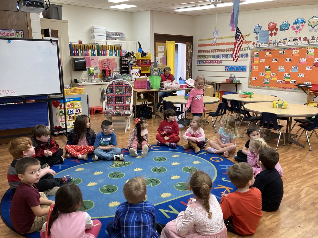 Mrs. Hummel's Junior Kindergarten Class enjoyed their January visit with Mrs. Gruetzmacher! She read cute winter stories, and the children had fun playing with her adorable puppets. Everyone liked her delicious brownies with homemade caramel frosting! We always look forward to this special time together!