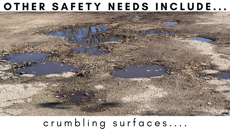 The school district recognizes the disintegrating concrete and asphalt and the need for safety improvements. This includes repairs and maintenance to sidewalks, parking lots, and other outdoor areas to ensure a safe and accessible environment for students, staff, and visitors.